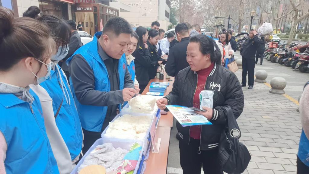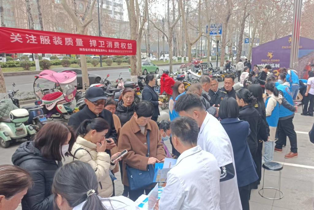 3月13日,省纤监中心联合西安市纤检所,走向人群密集的西安小寨消费商圈,开展“关注服装质量,捍卫消费权益”3.15消费质量宣传活动。