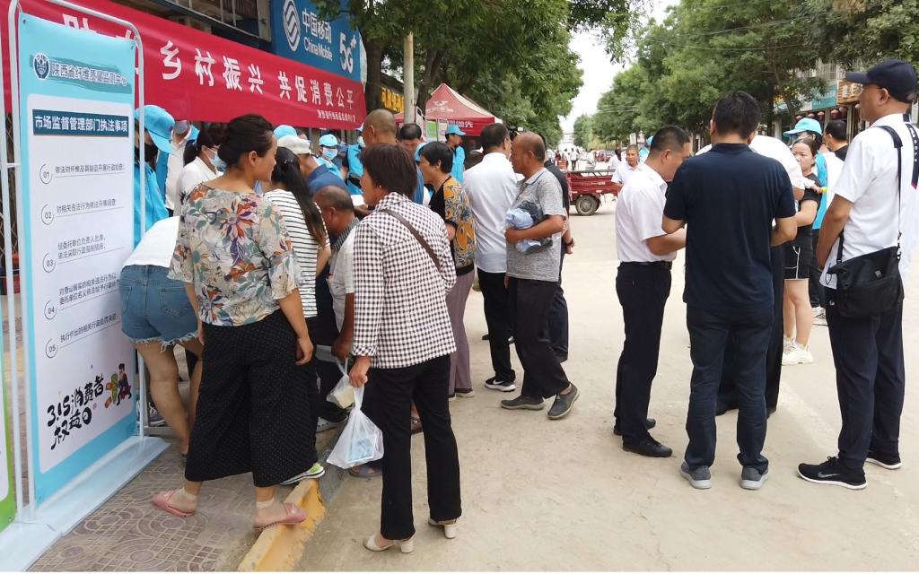6月21日,省纤监中心到乡村振兴帮扶点咸阳市永寿县马坊镇,以“助力乡村振兴,共促消费公平”为主题,开展“阳光纤监进乡镇”质量宣传活动。省市场监管局消保处处长刘军霞到场指导并安排“12315”工作人员配合开展宣传活动。