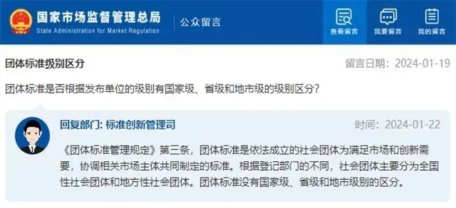 团体标准是否根据发布单位的级别有国家级、省级和地市级的级别区分?