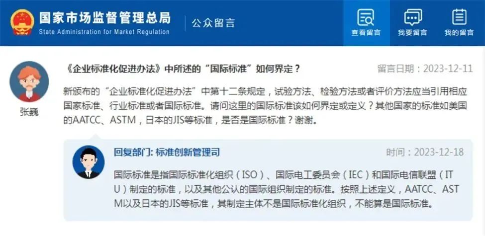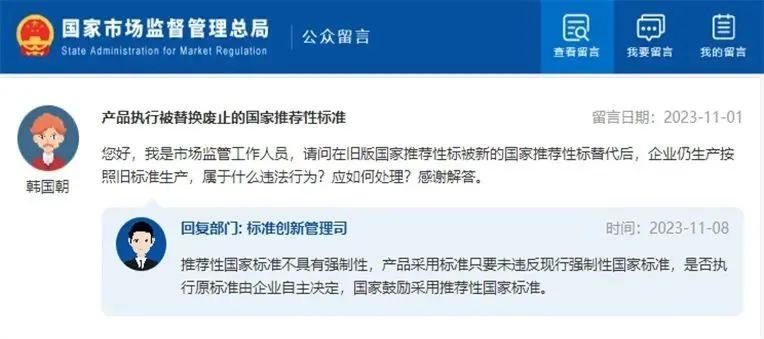 产品的生产、商贸、检测、监督等部门,在执行标准及有关法律法规时经常会遇到一些疑惑问题,这些问题如不及时解决,就会导致在执行中出现误解、偏差甚至引起矛盾、冲突。市场监管总局网站公众留言系统是答疑解惑的有效途径,小编将近期网友咨询的有关带有普遍性的问题及总局权威解释作了汇总,以期对广大生产企业及检测工作组有所帮助。