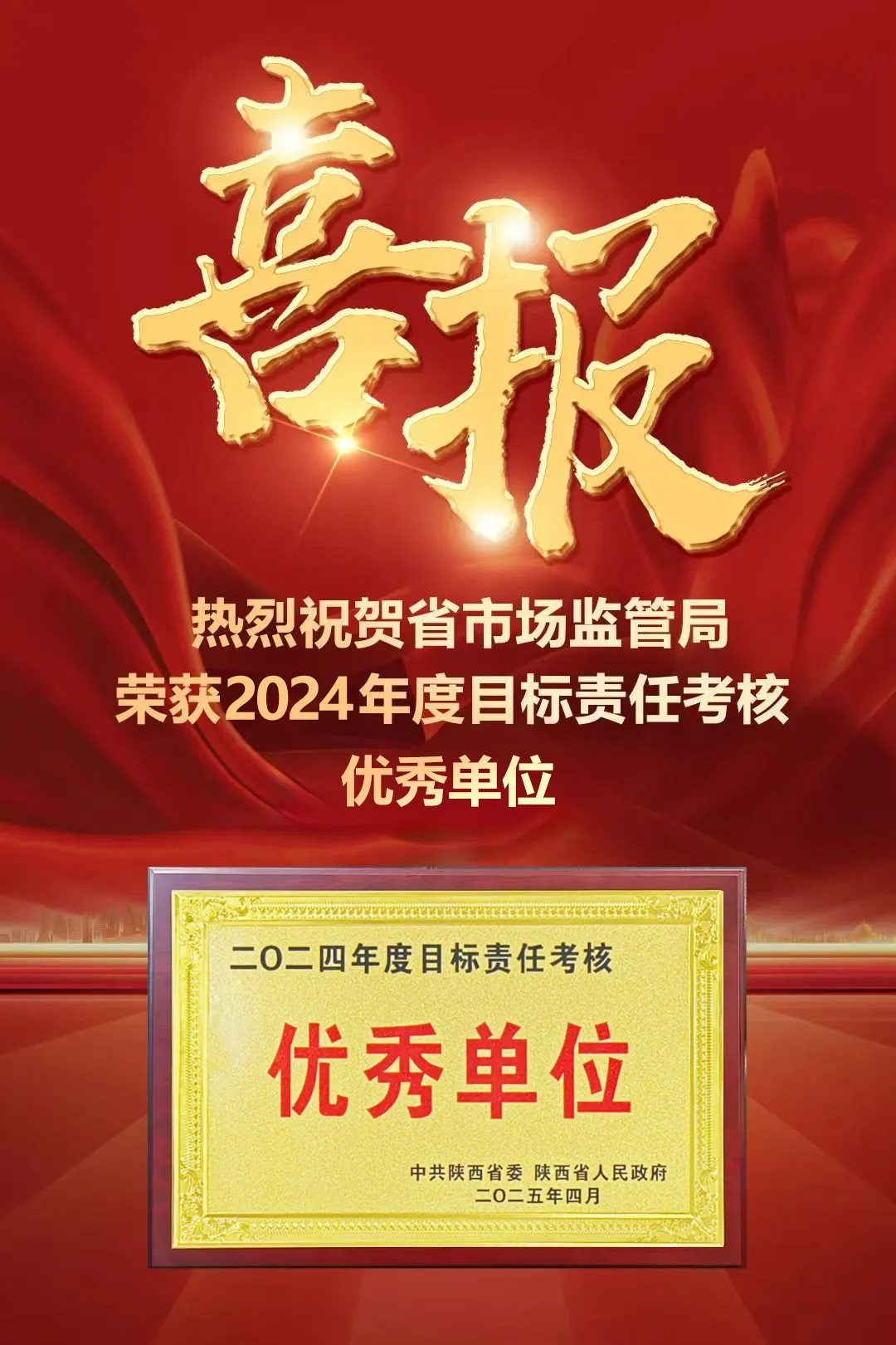 4月10日,全省2024年度目标责任考核总结表彰会议在西安召开,省市场监管局荣获2024年度目标责任考核优秀单位,实现了年度目标考核“六连优”。
