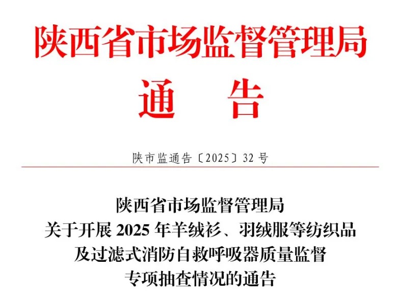 2025年羊绒衫、羽绒服等纺织品及过滤式消防自救呼吸器质量监督专项抽查不合格产品及企业名单