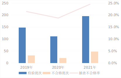 本次抽查主要涉及浙江省、广东省等产地的生产企业,抽查检验了170批次浙江省企业生产的产品,检出21批次不合格,抽查不合格率为12.4%;抽查检验了107批次广东省企业生产的产品,检出5批次不合格,抽查不合格率为4.7%。