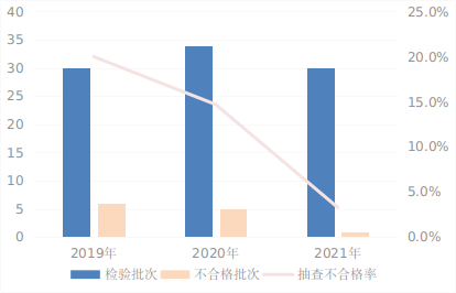 本次重点抽查检验了广东省18家企业生产的19批次产品,检出1批次产品不合格,抽查不合格率为5.3%。