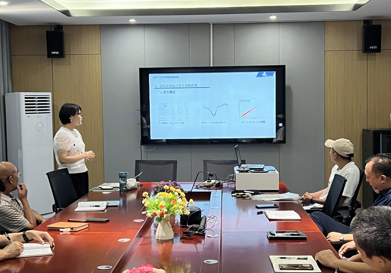 来自深圳市菲雀兰博科技研究中心的专家老师向大家详细介绍了近红外成分分析仪的应用背景、测试原理、测量优势、设备简介、行业应用、操作方法等情况。对设备的使用操作过程进行了现场演示并展开培训。通过培训,基本达到了人人会操作使用设备。