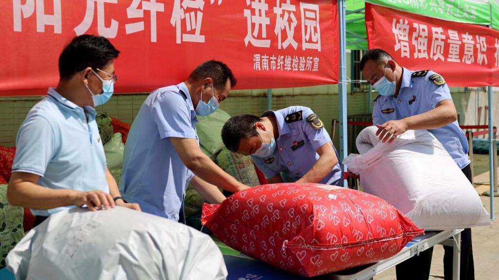 为保障开学季学生公寓床上用品质量安全,杜绝“黑心棉”等劣质絮用纤维制品流入校园。9月6日,渭南市纤维检验所组织业务骨干、技术人员走进渭南职业技术学院,开展“阳光纤检进校园”质量宣传活动。