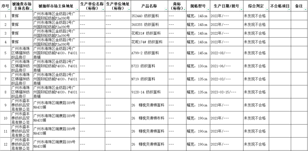 2023年第二季度,广州市市场监督管理局对纺织面料产品质量进行了监督抽查,共抽查了34批次产品,经检验,未发现不符合标准要求产品。