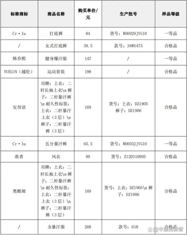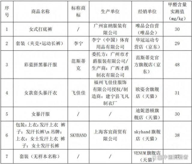 50款暴汗服测评范斯蒂克等7品牌检出甲醛