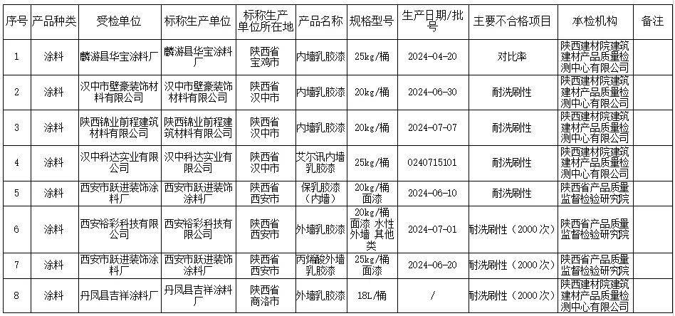 含挥发性有机物产品质量监督省市级联动抽查不合格产品及企业名单