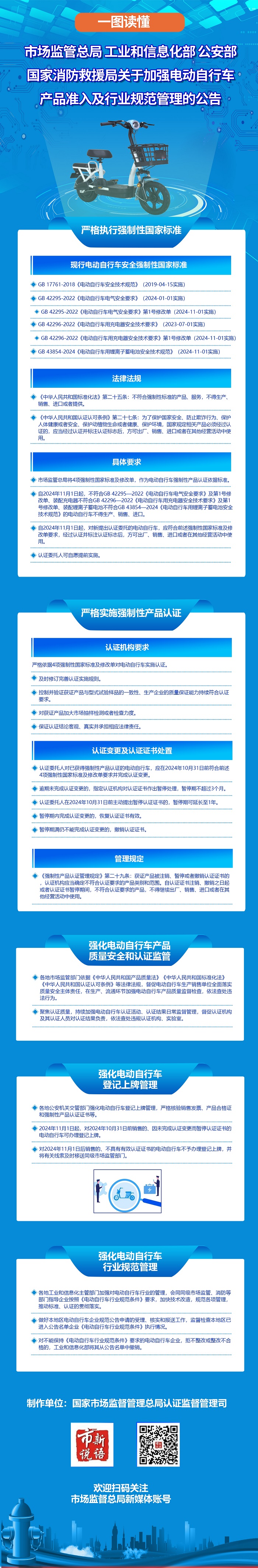 一图读懂 | 市场监管总局 工业和信息化部 公安部 国家消防救援局关于加强电动自行车产品准入及行业规范管理的公告