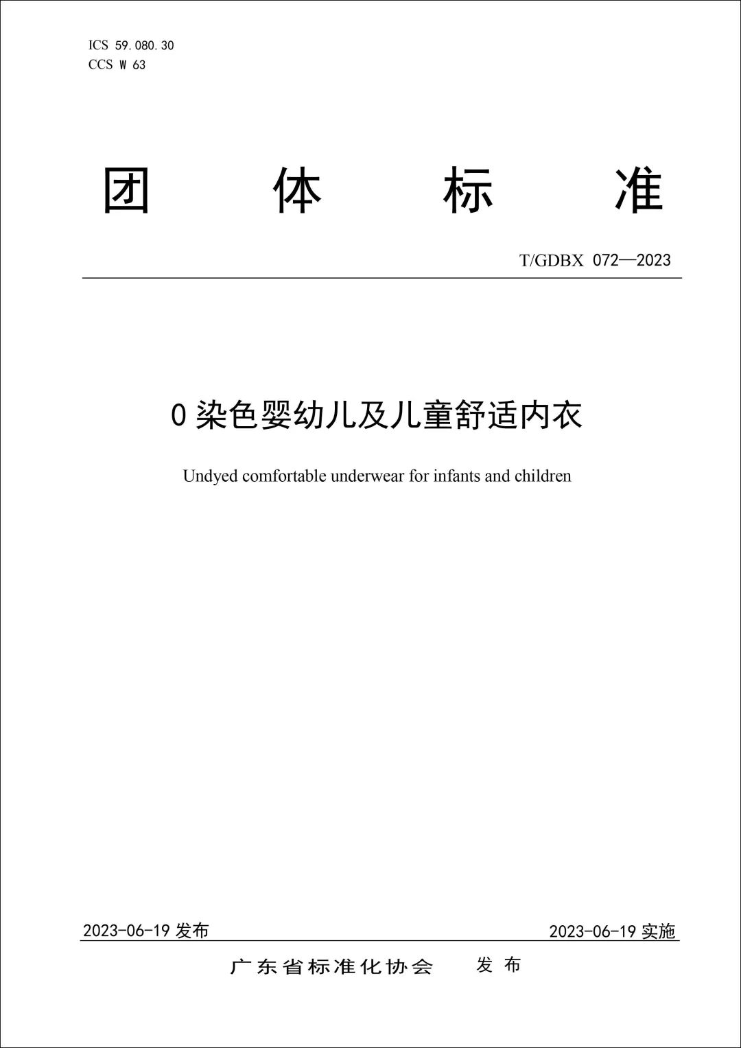 6月19 日,广东省标准化协会发布的团体标准《0染色婴幼儿及儿童舒适内衣》,对规范婴幼儿及儿童舒适内衣的高品质要求,提出定性定量的技术指标和规定。