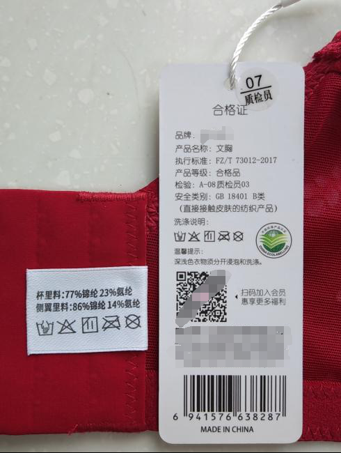 该项目是内衣产品质量的重要指标,消费者在选购时往往是依据明示纤维含量进行选购。不合格产品主要是以下三种表现:实测的纤维含量与标注值不相符、实测的纤维与标注的纤维成分名称不相符、产品无纤维成分含量标识。