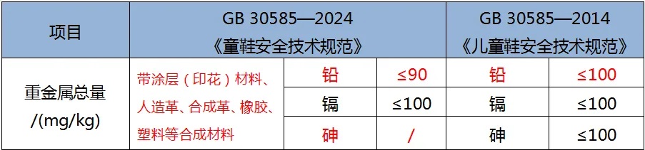 ● 为了保障儿童的人身健康,同时与国际先进水平保持一致,新标准将六价铬的指标要求由旧版标准的“≤10 mg/kg”提高至“≤3 mg/kg”。