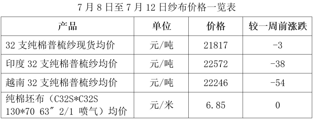 产品端:国内棉纱价格持稳,国外棉纱价格下降,坯布价格持稳。