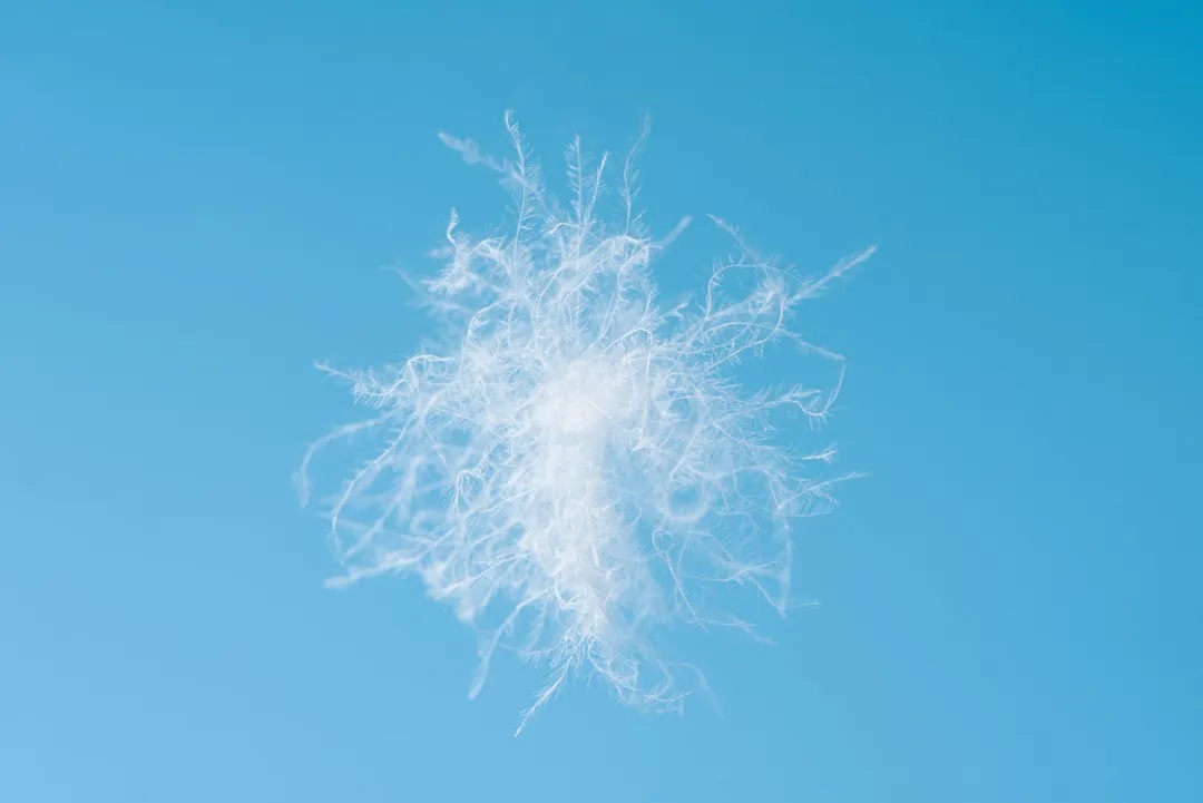 绒子,是一个绒核向四周发射多根丝状物形成的立体结构,从外观看上,就像一个大朵蒲公英,呈现出立体的球状结构。