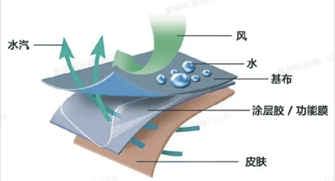 冲锋衣看似就一片面料,但实际上通常都有2到3层不同的组合而成,每一层都有讲究。