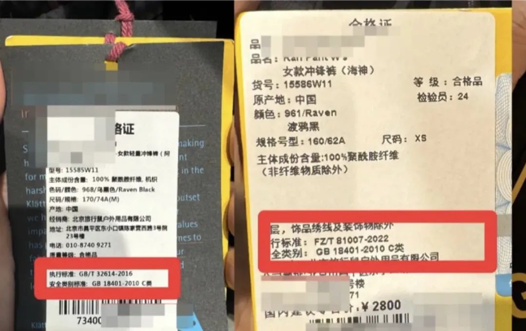 所以,大家在买冲锋衣的时候,一定要看看国标哈,不然花大钱还买了件“假冲锋衣”就得不偿失了。