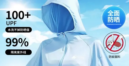 消费者在选购防晒衣时,可查看商品宣传页面和产品标签信息中的面料类型、适用标准、尺寸型号。