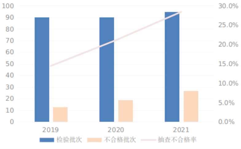 本次重点抽查了广东省、江苏省、重庆市等产业集聚区的生产企业,分别抽查了20批次、10批次、10批次产品,抽查不合格率分别为30%、20%、40%。另外,抽查了4批次贵州省企业生产的产品,检出3批次不合格。