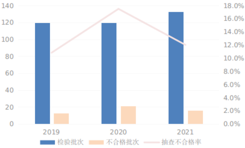 (一)沙发抽查不合格率为12.0%。本次抽查了14个省(市)133家企业生产的133批次产品,发现16批次产品不合格,抽查不合格率为12.0%,较上次抽查下降5.5个百分点。该产品近3年国家监督抽查不合格率分别为10.8%、17.5%、12.0%。