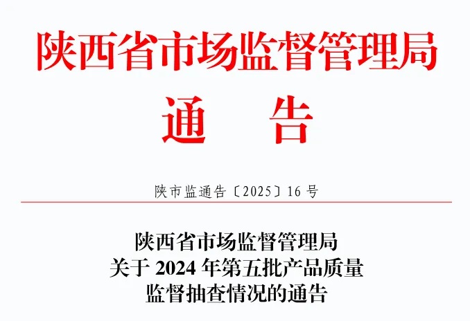 陕西省市场监督管理局关于2024年第五批产品质量监督抽查情况的通告