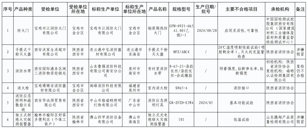 在西安、宝鸡、咸阳、等地区流通领域抽查了12家企业销售的13批次产品。抽查发现1批次产品不合格,不合格项目为20℃温度喷射性能试验(喷射剩余率)、灭火剂充装量检查。