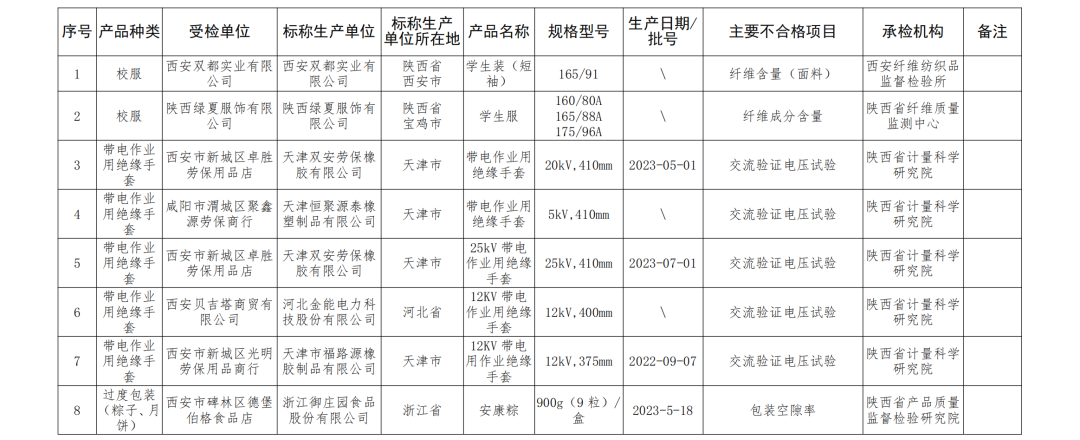 近期,陕西省市场监督管理局组织开展了校服等9种产品质量省级监督抽查,现将抽查情况通告如下。