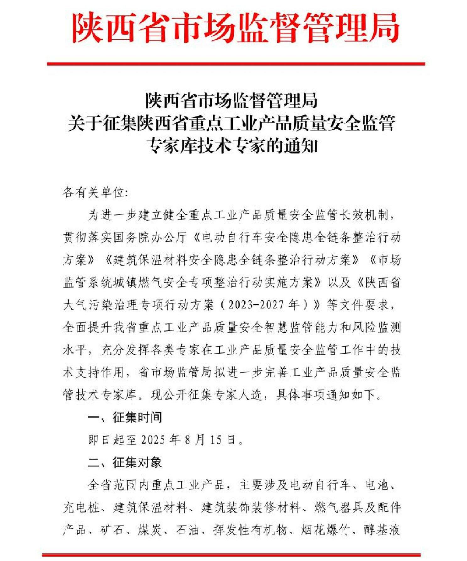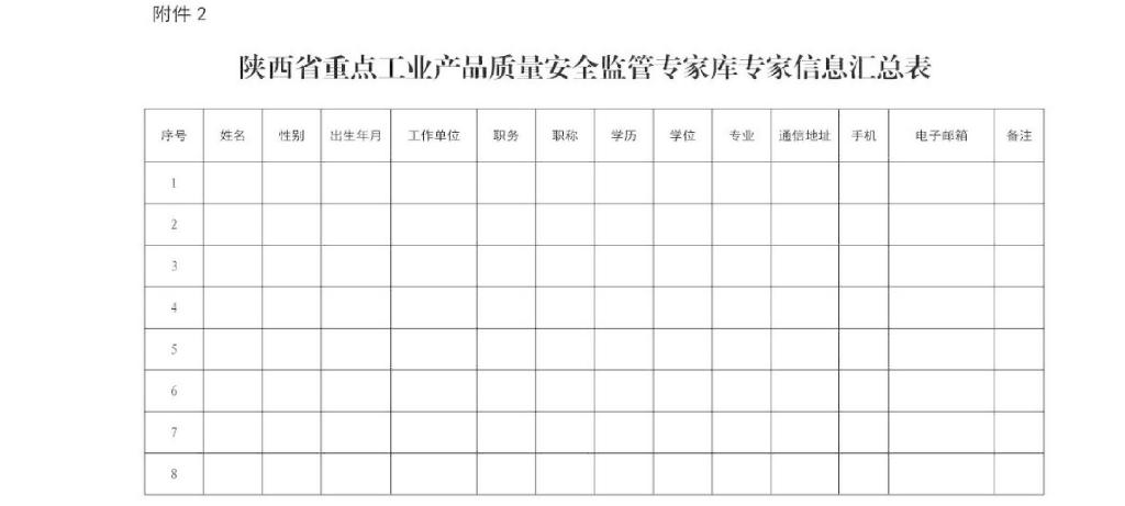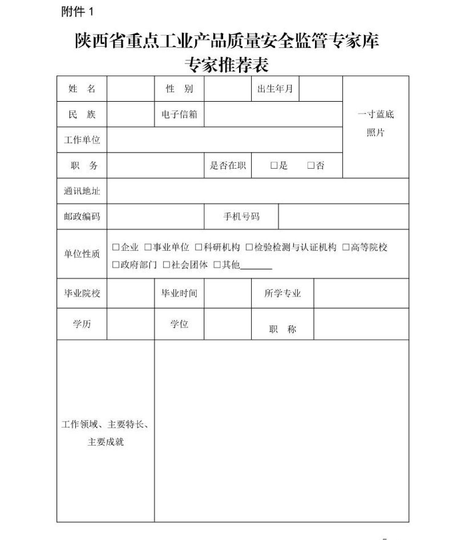关于征集陕西省重点工业产品质量安全监管专家库专家人员的通知