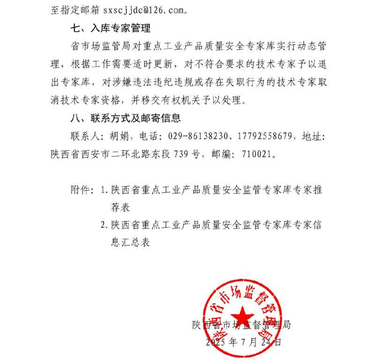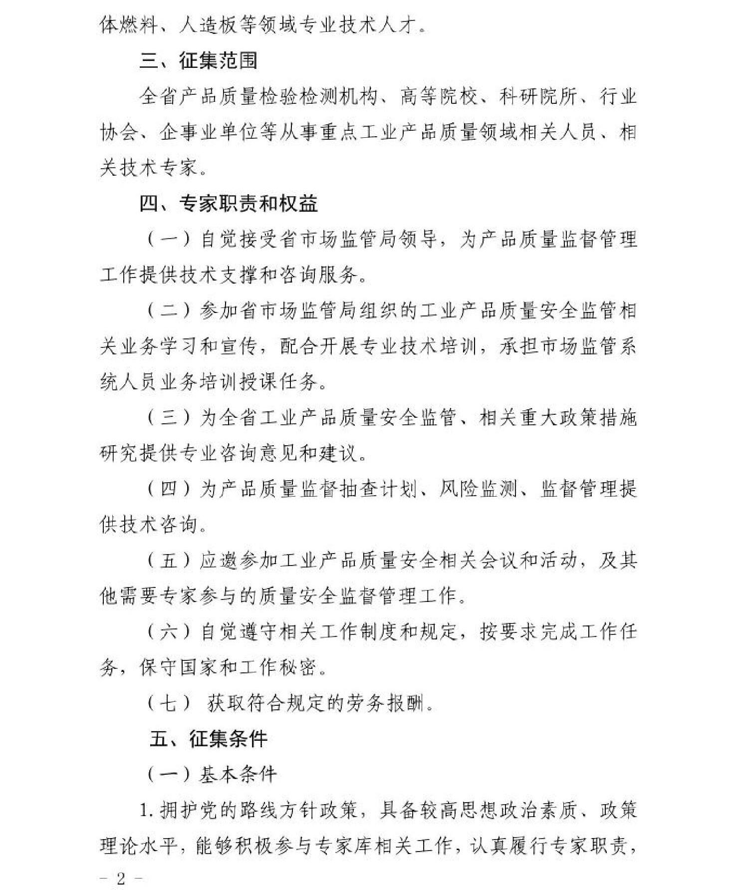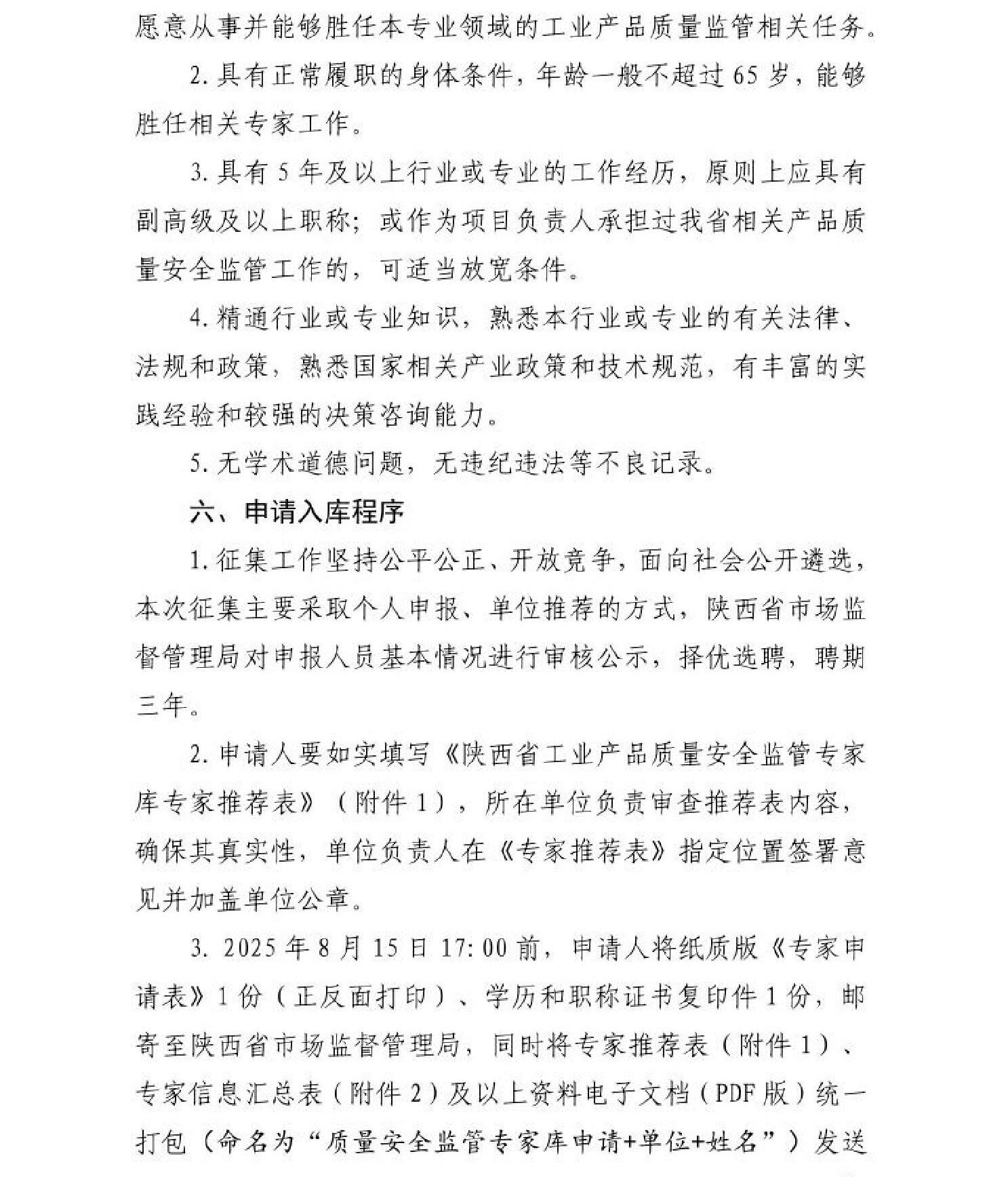 关于征集陕西省重点工业产品质量安全监管专家库专家人员的通知