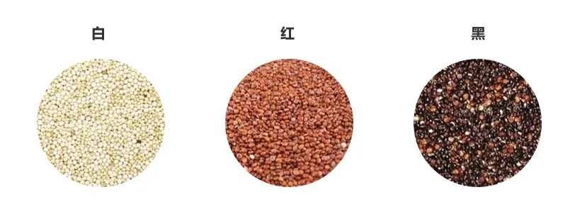 藜麦根据颜色主要分为白、红、黑三大种类,它们在外观、口感和营养价值上各有特色。